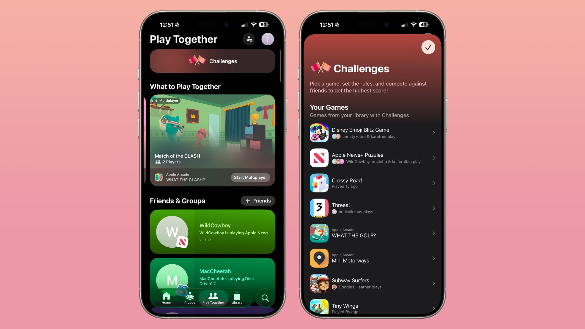 In the dedicated Play Together tab, you'll see a list of games that your friends are playing, along with suggestions for multiplayer games that you can play with someone else. There's also a dedicated Challenges tool, which is a new feature.