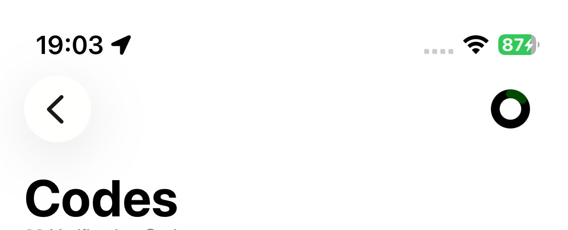 The countdown indicator in the Passwords App -> Codes page looks like a solid black circle on my phone, on the screenshot its a dark green area on a black background so difficult to see.