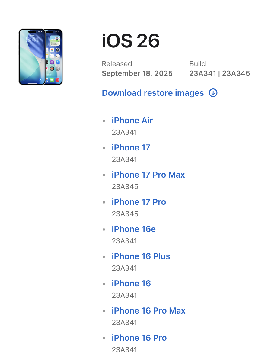 It’s still 26.0, not 26.0.1.the latest builds are the 341's except the 26.0.1 for the Pro and Pro Max (where it is 345)