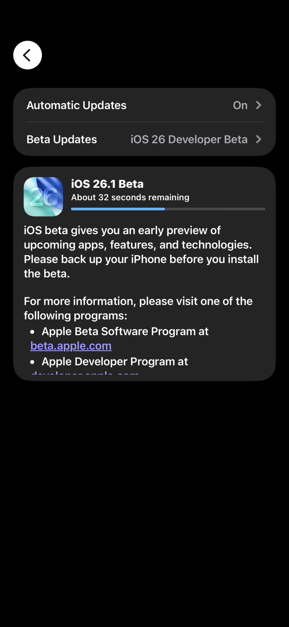 New beta cycles are alwaysIt must be downloading the whole image, seems far too large for just a delta. Was like 14-something GB on 16 Pro Max