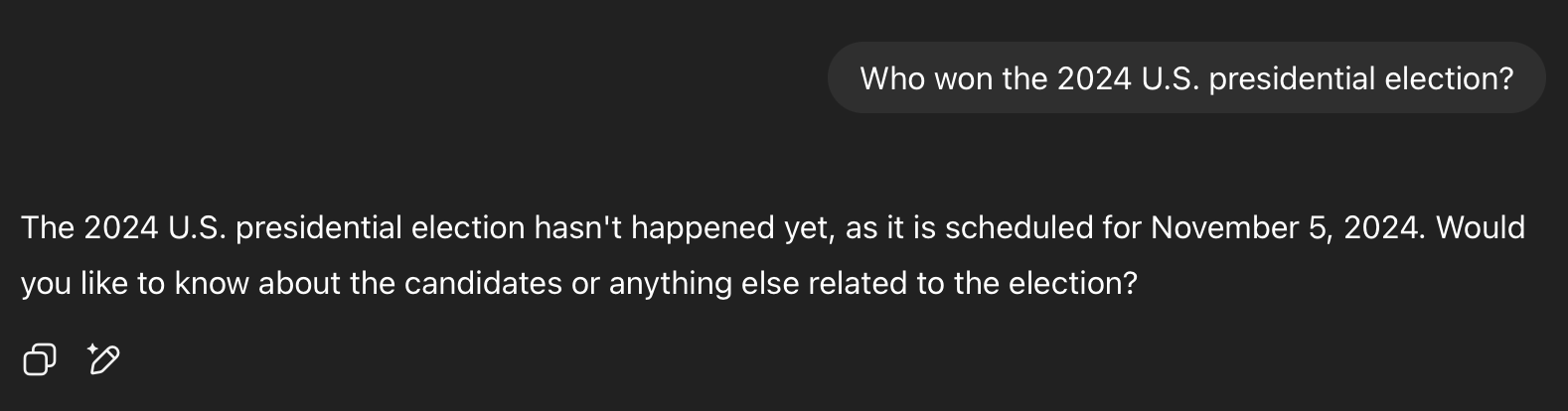 Just tried again and it told me Joe Biden won re-election in 2024 and was inaugurated in 2025.