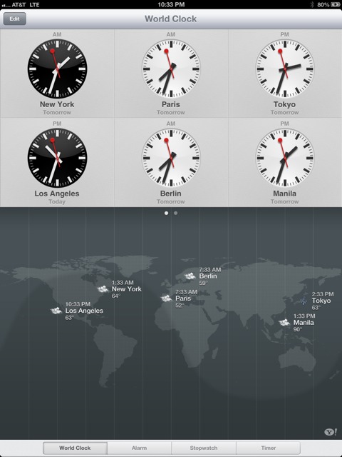 On iPad clock app temperature shows up along with time.