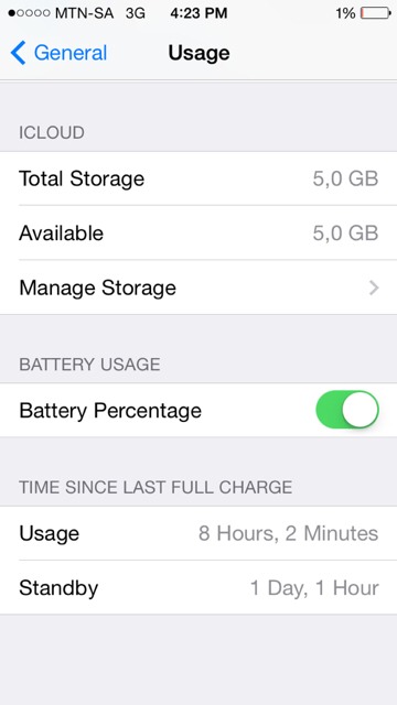Yesterday it ended up with 8hrs and 10minutes of usage over 20 hrs standby.