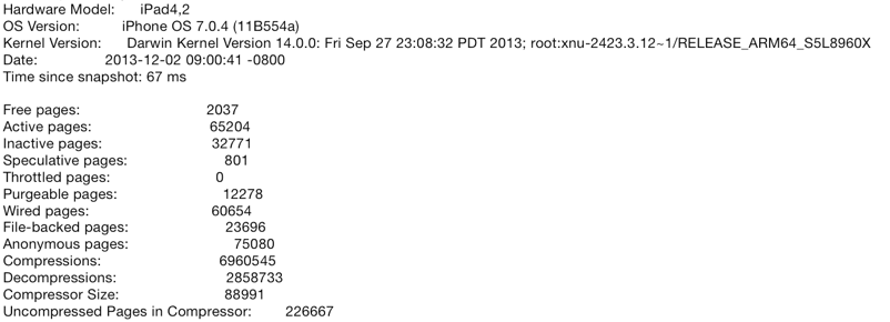 Yeah riiight. But may be it will unlock Compressed Memory - a feature currently exclusive to Mavericks. If you look into Diagnostics logs, the LowMemory logs have some stats for memory compressor. I wonder if this feature was not ready for simultaneous iOS7/Mavericks launch but Apple left it in iOS7 unannounced to gather diagnostic data. It's quite possible that it's the buggy memory compressor that caused all these Safari crashes, tab reloads, and respringing.