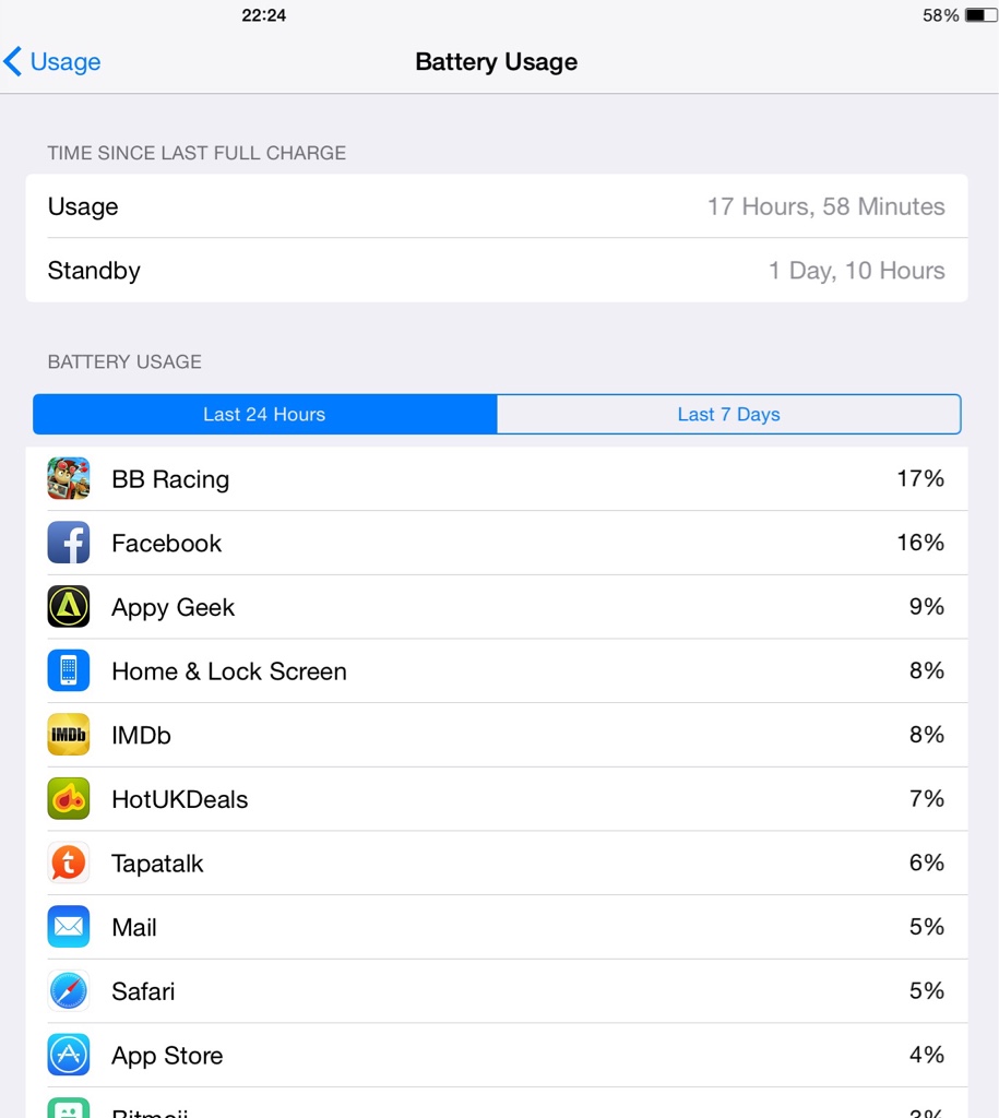 Facebook / Twitter is still on there however that's only because of last 24hr activity. I spent more time on Safari browsing on WiFi and using Snapchat a few times.