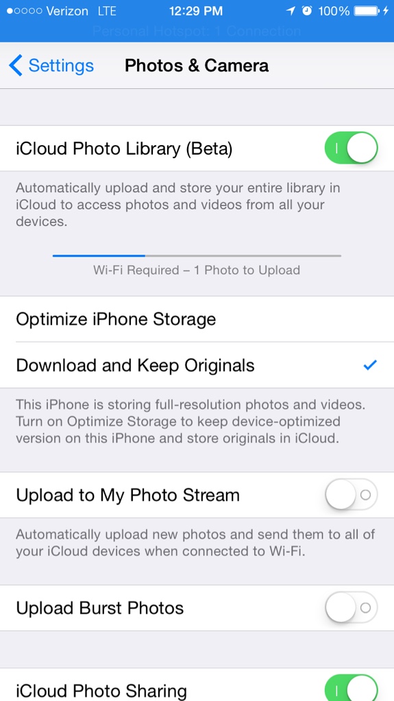 I enabled iCloud Photo Library and I've seen where numerous people are having to turn off cellular data and switch it to wifi, well I only have cellular data access and it tells me I need wifi to finish uploading. I don't have the option to use cellular data with iCloud Photo Library on the beta. I do have cellular data enabled for photos but it tells me I need wifi to use iPL. Did they remove the ability to use cellular?