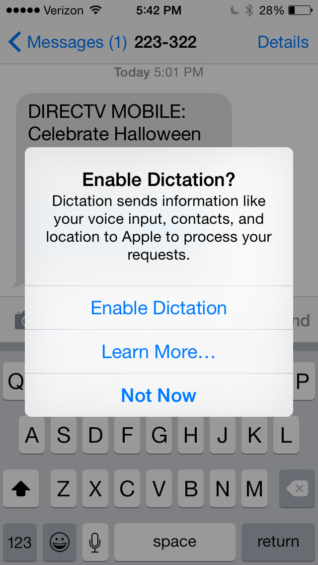Shortly after downloading, I was composing an email and tapped on the microphone to speak, as I normally do. A pop-up message asked if I wanted to "Enable Dictation" which I found weird, since it's always been enabled and I don't ever remember an update disabling it.