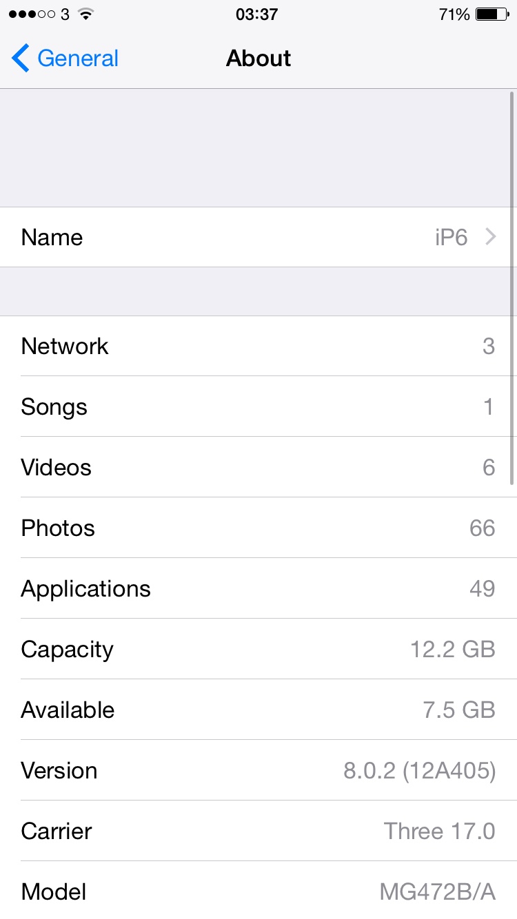 On the other hand if the 12.2GB available space is space available after taking into account the size of he iOS base install, then I am damned if I know what is using the other 2GB of space that is not accounted for after adding up the size of the applications and data.