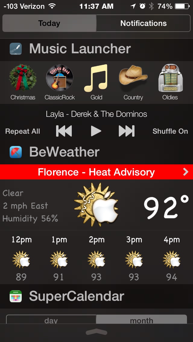 Some new buttons for battery, disk space (yes, 5% on my iPod,), calendar, and time too. There's also weather too but I don't have that setup here.
