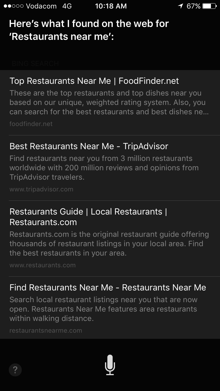 Siri suggestions ain't working for me anymore. For example when searching for a restaurant. It always wants to do a web search. Anyone else have this issue?