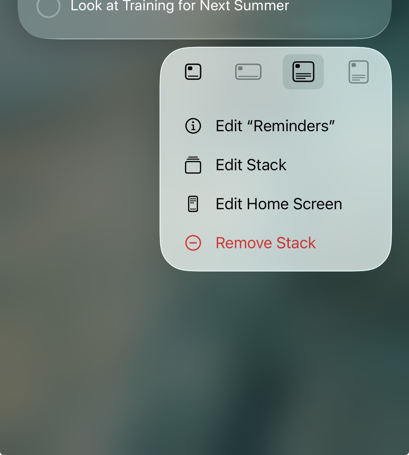—to clarify there seems to be an extra large widget size (large widget is the selected size and there’s another extra large size option to the right of it.) It’s also only in today view— the regular home screen has the 3 sizes with the app icon option on the left.)
