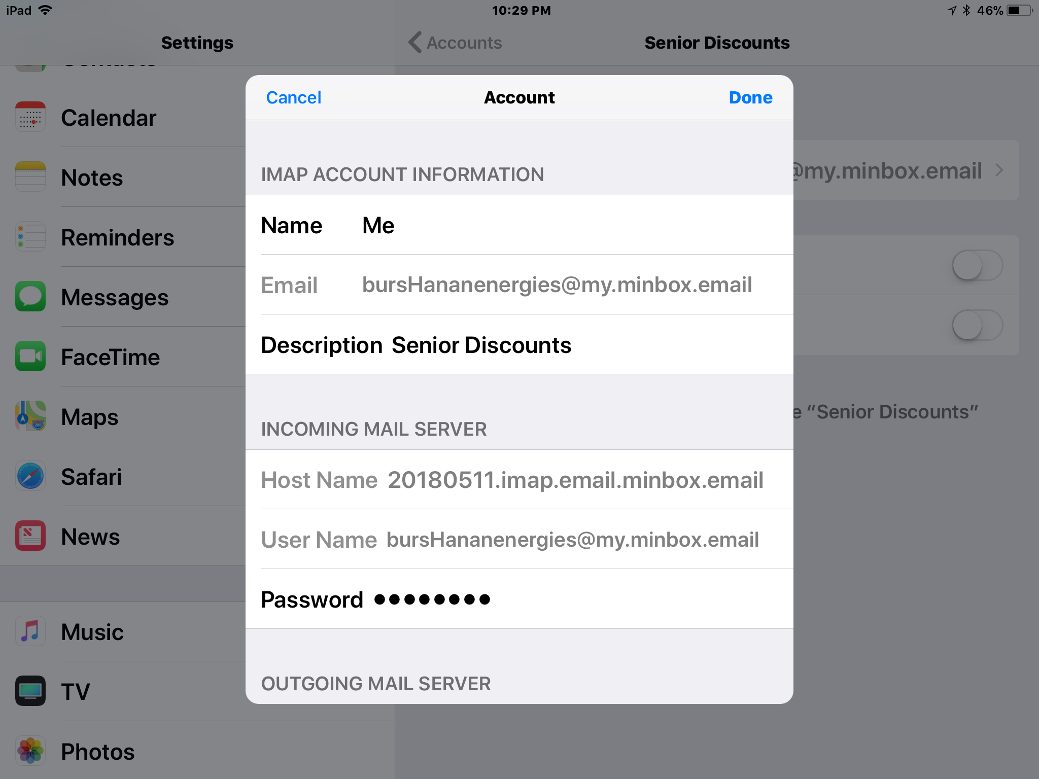 Has anyone experienced the following? My partner's iPad Mail app was hacked. A spam email account, calling itself "Senior Discounts", was installed on her iPad's Mail app. The ability to sign out/delete the unwanted email account is disabled. Her only recourse was to reset the iPad to its factory settings and restore her apps and content manually. Below is a screen capture of the account info.