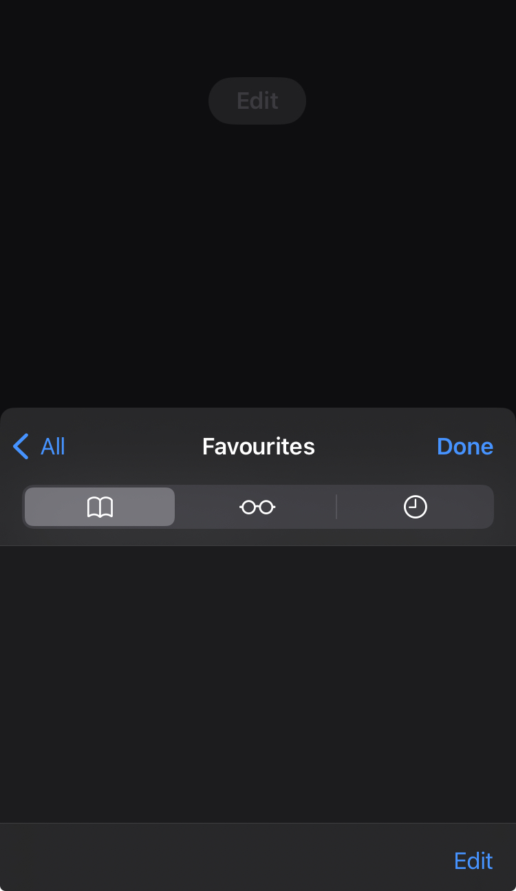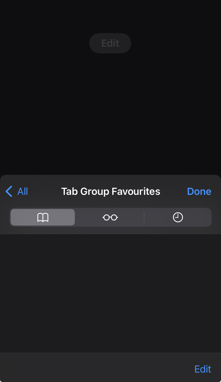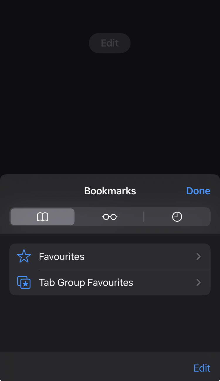 Bookmarks, Favourites and Tab Group Favourites are all empty. These bookmarks don’t show anywhere but in the address bar.
