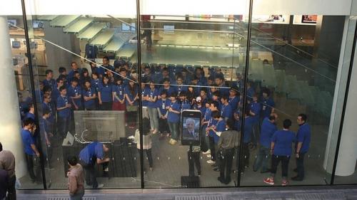 Final staff briefing before launching the iPad 2 at Sanlitun retail store