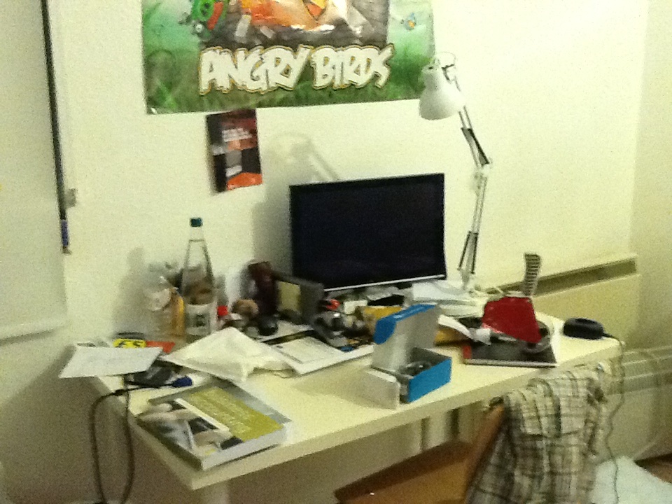 Below a photo of my desk taken with iPad 2 rear camera, you can't tell how truly awful it is unless you click to make it bigger. But trust me, it's bad. I think the front camera is slightly better, but still terrible for still photos. 720p My A***