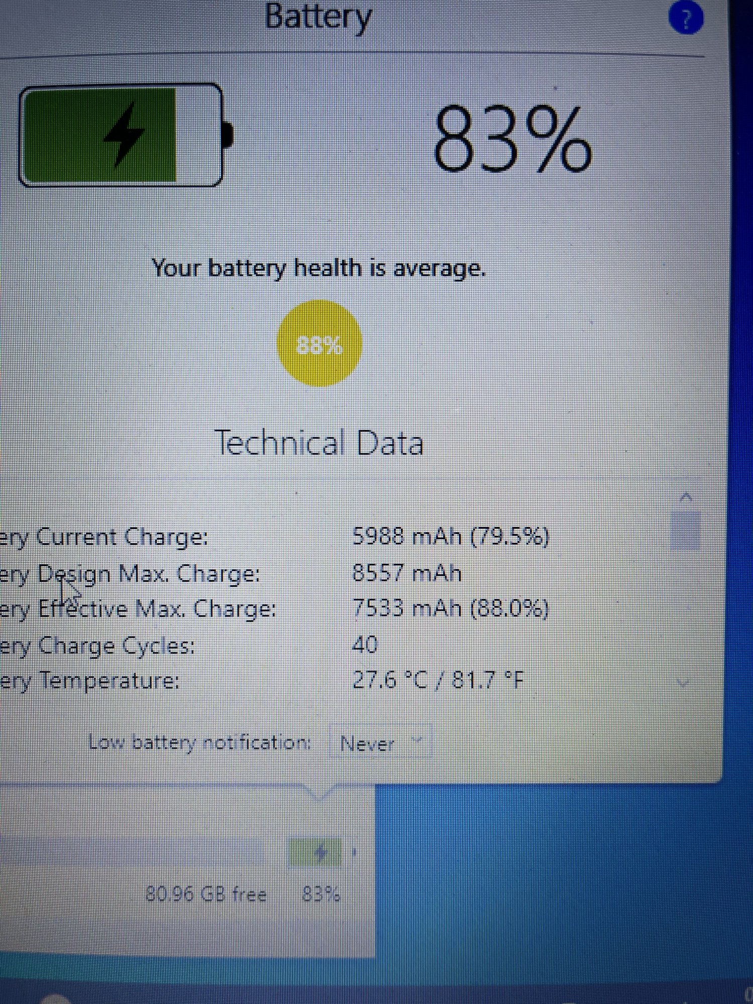Battery has been well looked after. Max discharge to 35% and Max charge to 85%. Always followed this regime in past and even on my other devices and never had this issue.