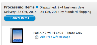 confirmation email a 16:02 saying dispatch 2-4 days delivery estimate of 24th -