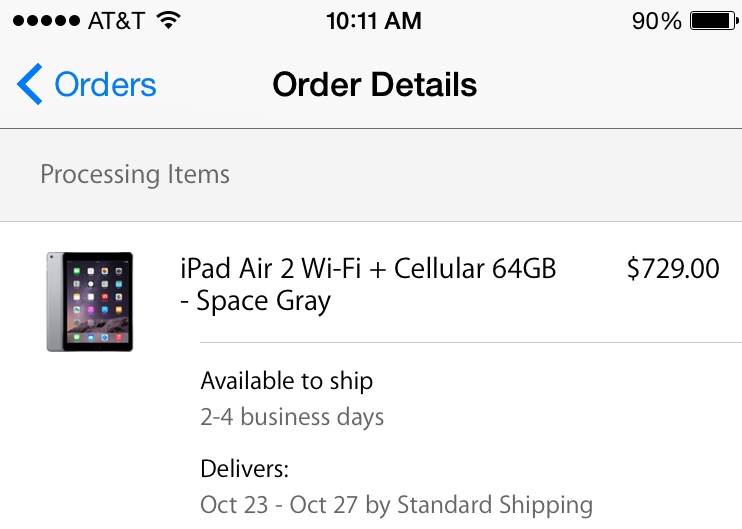Great tip! My 64gb Space Gray LTE model is in Tennessee and should arrive tomorrow. Apple still says it is "preparing for shipment."