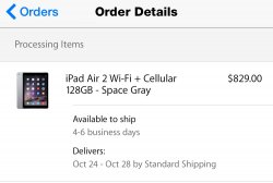 Great tip! My 64gb Space Gray LTE model is in Tennessee and should arrive tomorrow. Apple still says it is "preparing for shipment."