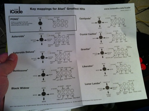 Out of the box, the iCade supports Atari's Greatest Hits iPad app which offers 100 classic Atari games in a single package. Almost every Atari game is already supported with the iCade. The included instructions show how different controls are mapped to the iCade:The iCade comes packaged unassembled. The box contains the main control unit, two side panels, a back panel, a handy flip-up top panel with instructions printed on the inside face, a lovely red joystick knob, screws, batteries, and a set of instructions. Getting the unit together with the help of the illustrated assembly sheet is about 5 to 10 minutes' work.