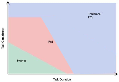 (For me I guess "Phones" should also extend indefinitely along the "Task Duration" axis for very low-complexity tasks. For example, I often have to listen to hours and hours of audio, and the Phone is the most appropriate device for that regardless of task length.)