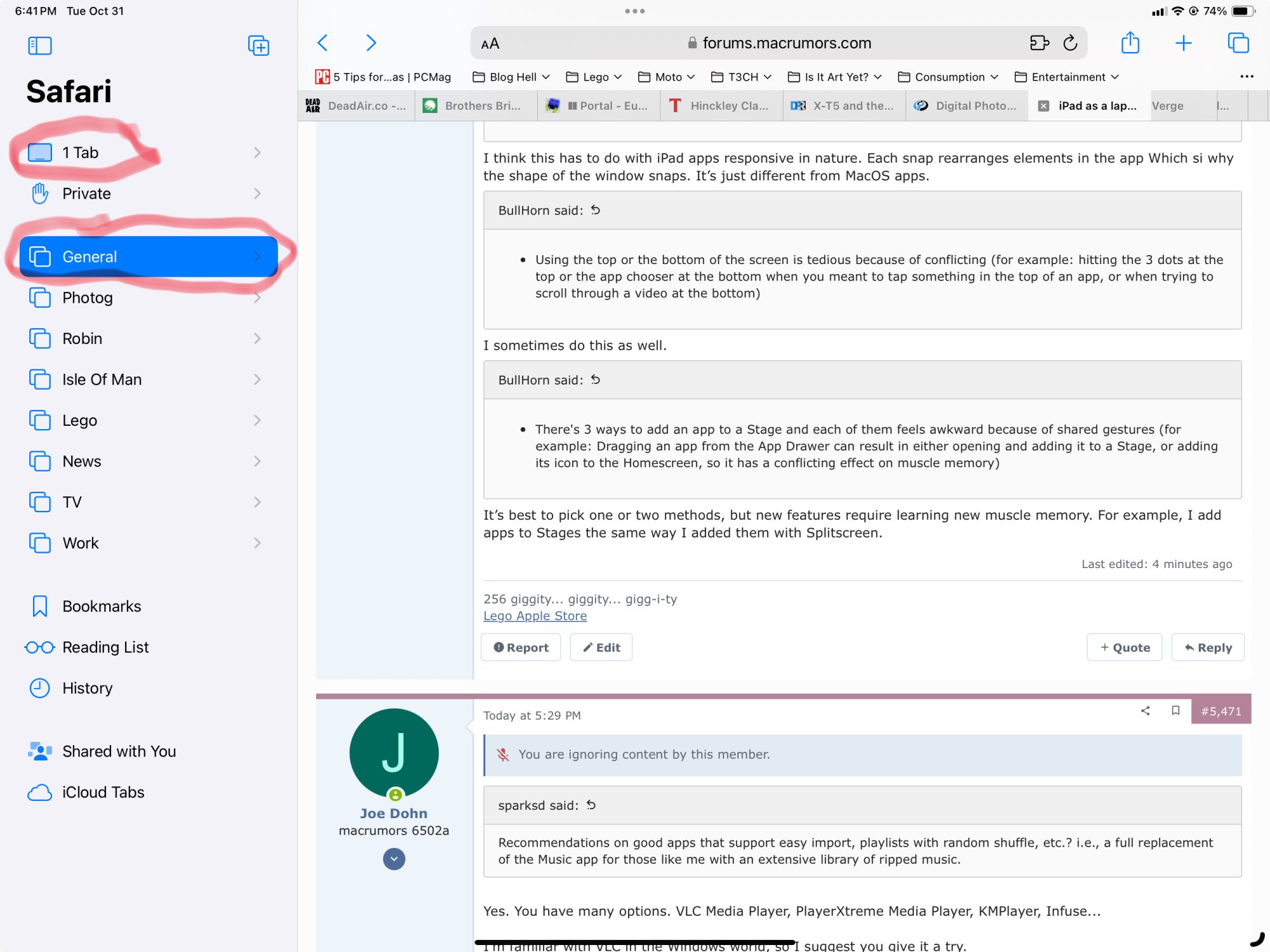I’m still on iPadOS 16, but I think it’s my fault for opening several Safari windows with normal and private tabs. Knowing the way iPadOS manages different instances of an app, next time I’ll stick to the same window. The problem is that I find it useful to have one tab in the monitor (for video stream for instance) and other tabs on my iPad screen. We’ll see how I manage that… probably using Safari tab groups even more.