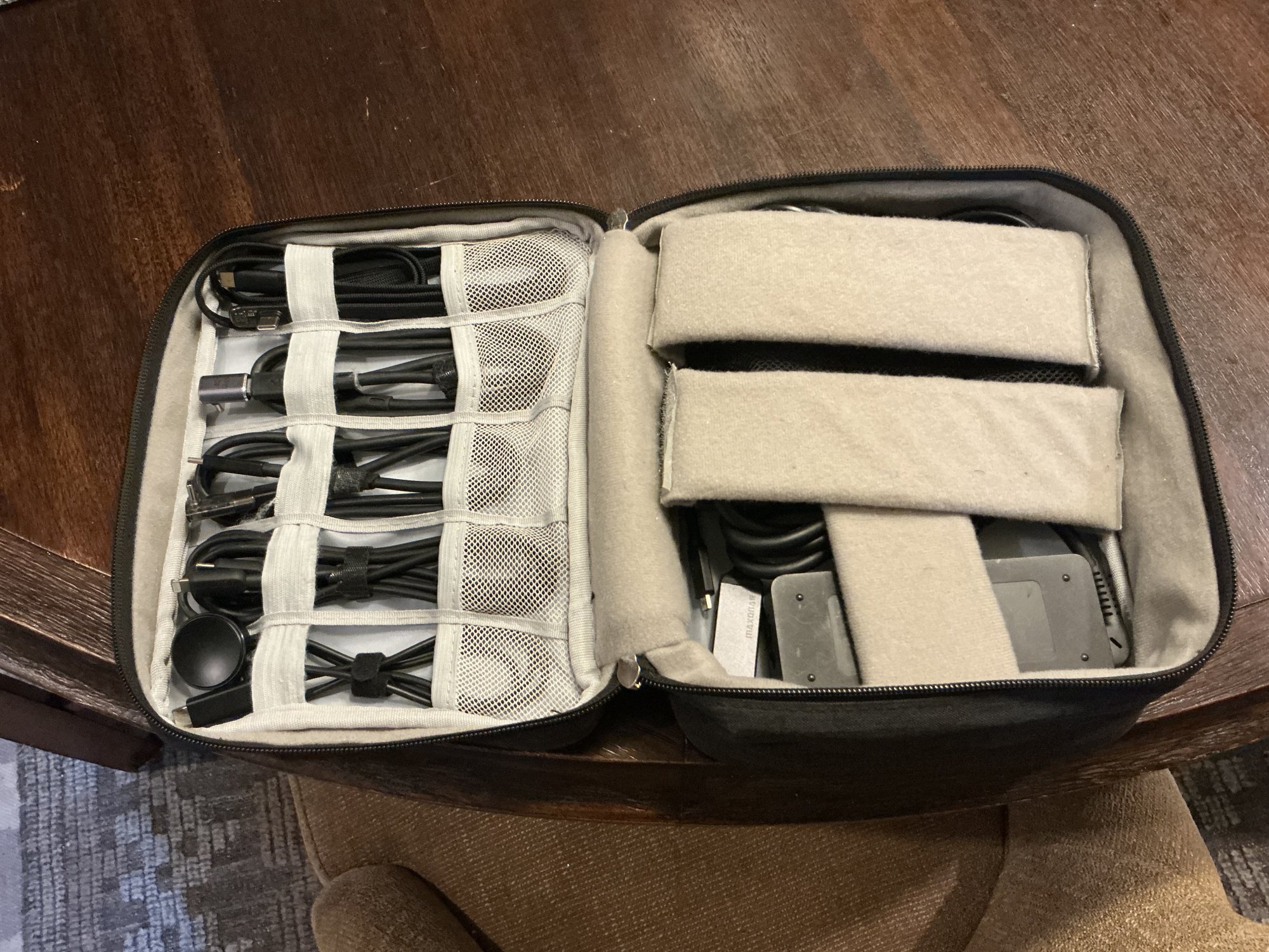Well, I have cable for my portable monitor, then a cable to plug in the Galaxy Fold.. as well as my Galaxy Watch if ever it needs it. Next I can plug in my AirPods Max if it needs charging and one thing that I find great… it can charge while still in use. And I’m able to plug in the Samsung SSD as well.
