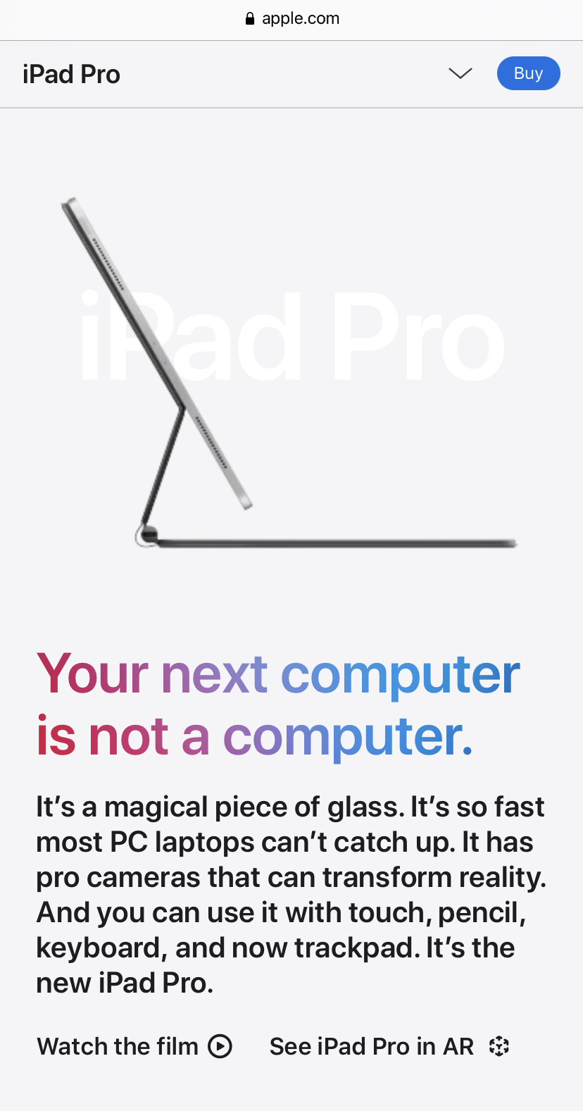 At the end of the day. It is just a different computer for different folks. It will probably not replace the power that professionals have on a Mac. But there are millions and millions of users during this pandemic that are more and more tuned with the iPad workflow.