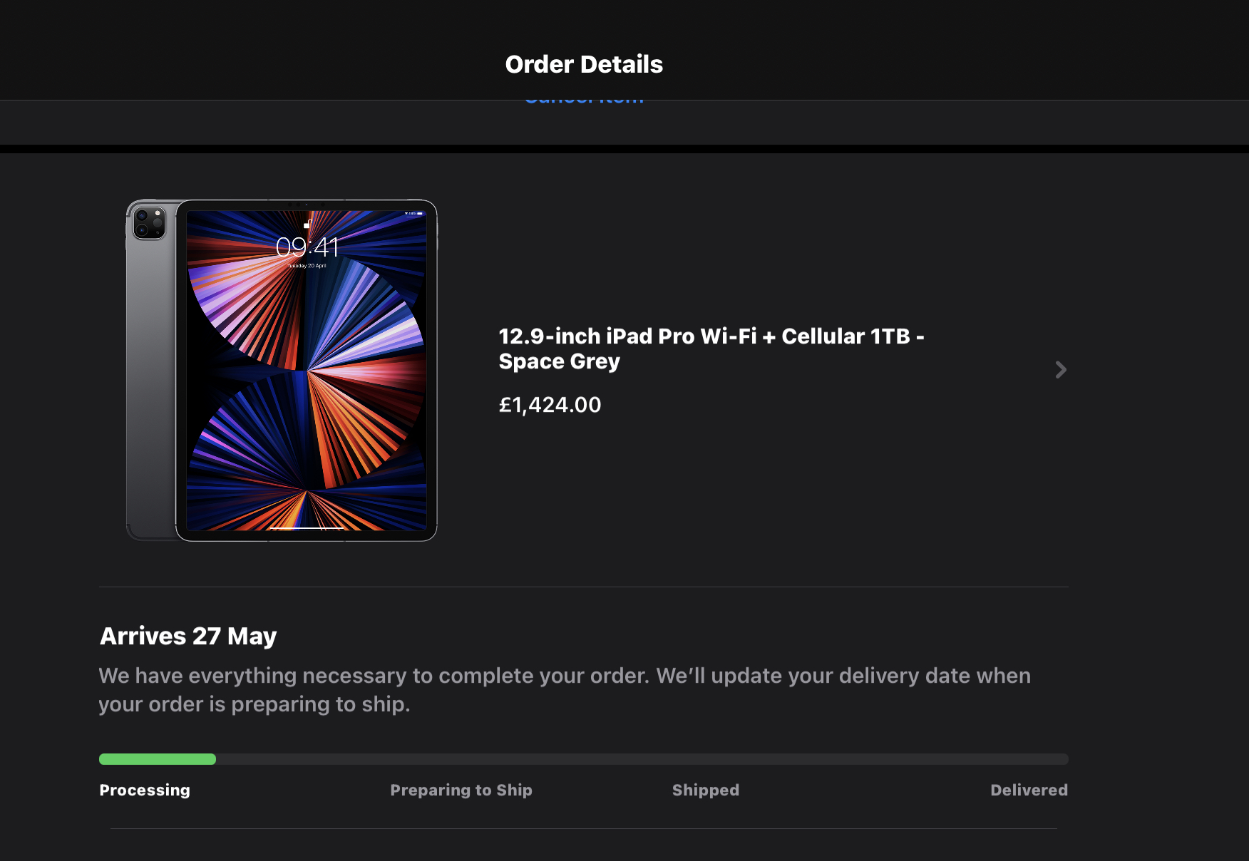 Obviously, it will be storage size dependent as well, whether engraving was ordered(that actually seems to be speeding orders up, oddly enough), and possibly even colour dependent as well. Space Grey seems to be the most popular. I don’t know about the storage size, but possibly the 256, 512 GB and 1 TB sizes are more popular than the smallest and largest sizes.