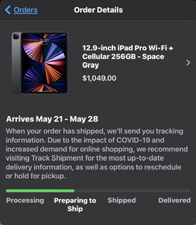 I do to, 12.9 Space Grey 128gb no engraving Wi-Fi only.I think my will changed later tonight USA 11inch 256GB Space Grey wifi Apple.com order - my card has not been charged yet