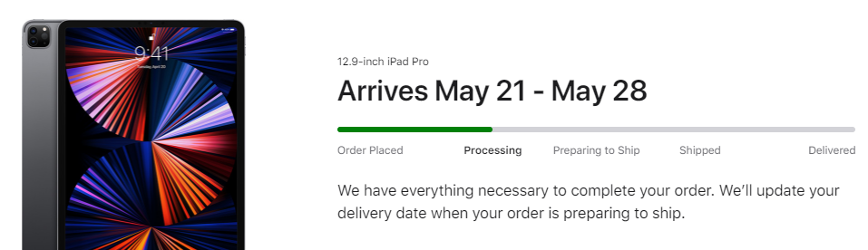 Yea yea, I know. I wasn't surprised by it. Still, they could have just have their video presentation two weeks later, sell the Airtags same day and have the iPad and iMac delivery just a week or maybe ten days out. I wonder how many people lose interest and cancel in those 3-4 weeks.They did mention that it won't be available until the end of May