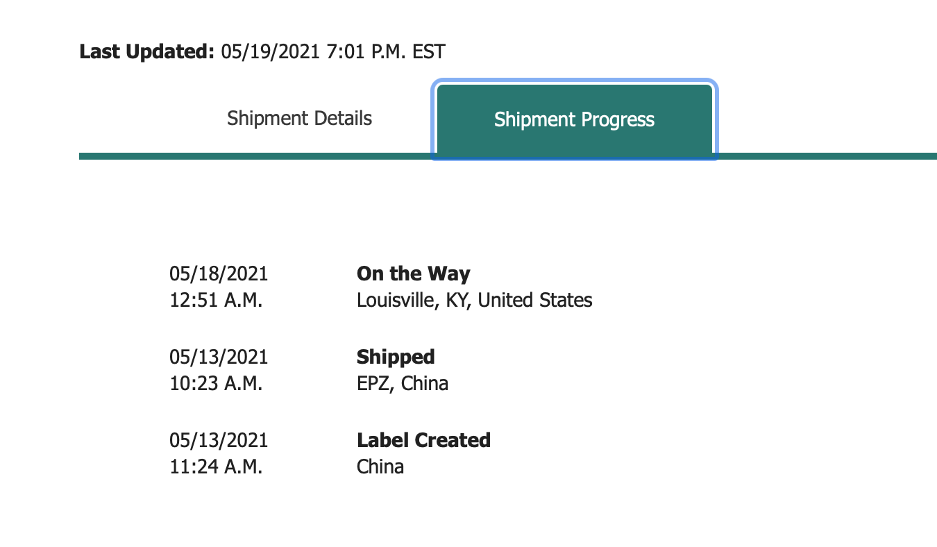 hoping there is some movement by tomorrow.Get the UPS app… if you want to be disappointed. It’ll tell you it’s still stuck in KY.