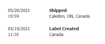 UPS tracking now shows delivery for tomorrow, May 21. 8:43pm scan in Caledon. Delivering to Richmond Hill, Ontario.Order shipped, delivery on Apple now May 21. UPS no date. Shipping to Richmond Hill, ON.
