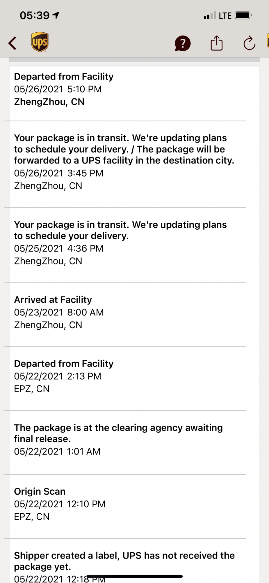 No one knows. Yours looks like mine and many others. The 4:37 scan isn’t a leaving scan either - it’s just a generic in transit automated message. USPS does something similar when there’s no updates for a bit. This has been the discussion today.Mine left ZhengZhou at around the same time yours did, but I’m getting this “rescheduling delivery” notice. Any idea what that means (other than the obvious)?