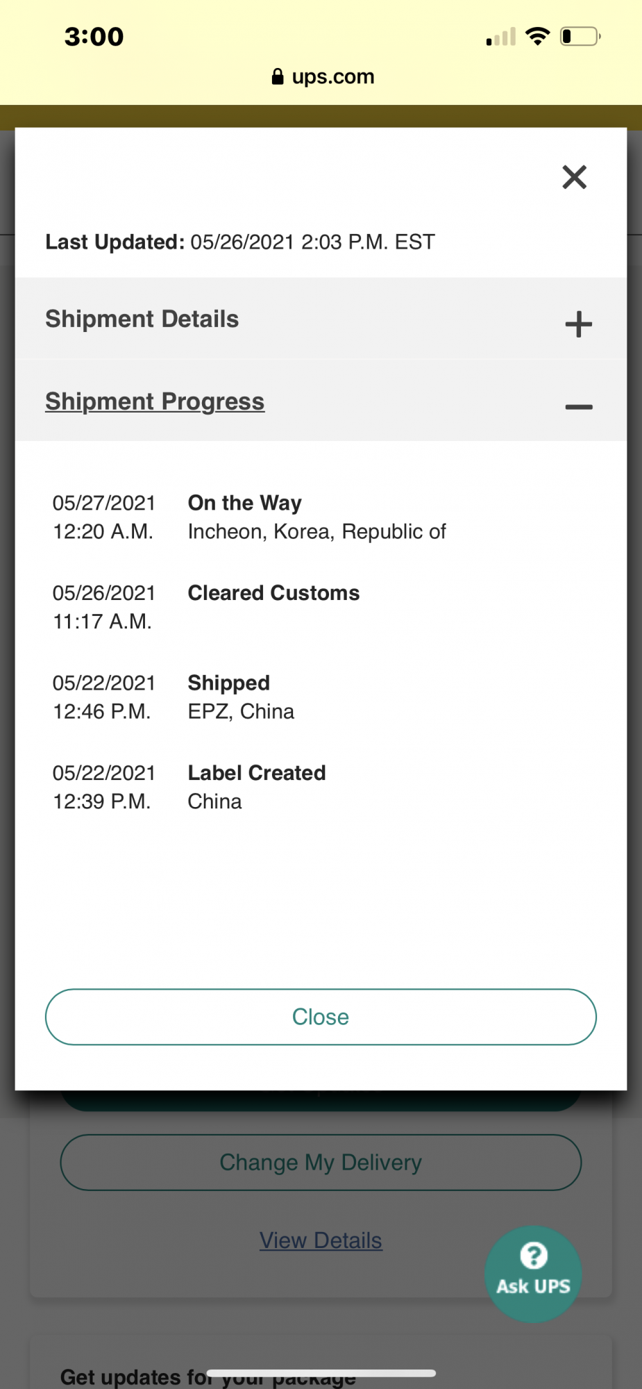 For those that made it Korea today (the so called stuck pallet load), does it seem possible to still receive yours by the weekend? I'm guessing at this point it is pretty doubtful with going to Anchorage, Louisville and then on to the receiving city. Still hope it might be possible as I'd love to get mine set up before a longish trip.