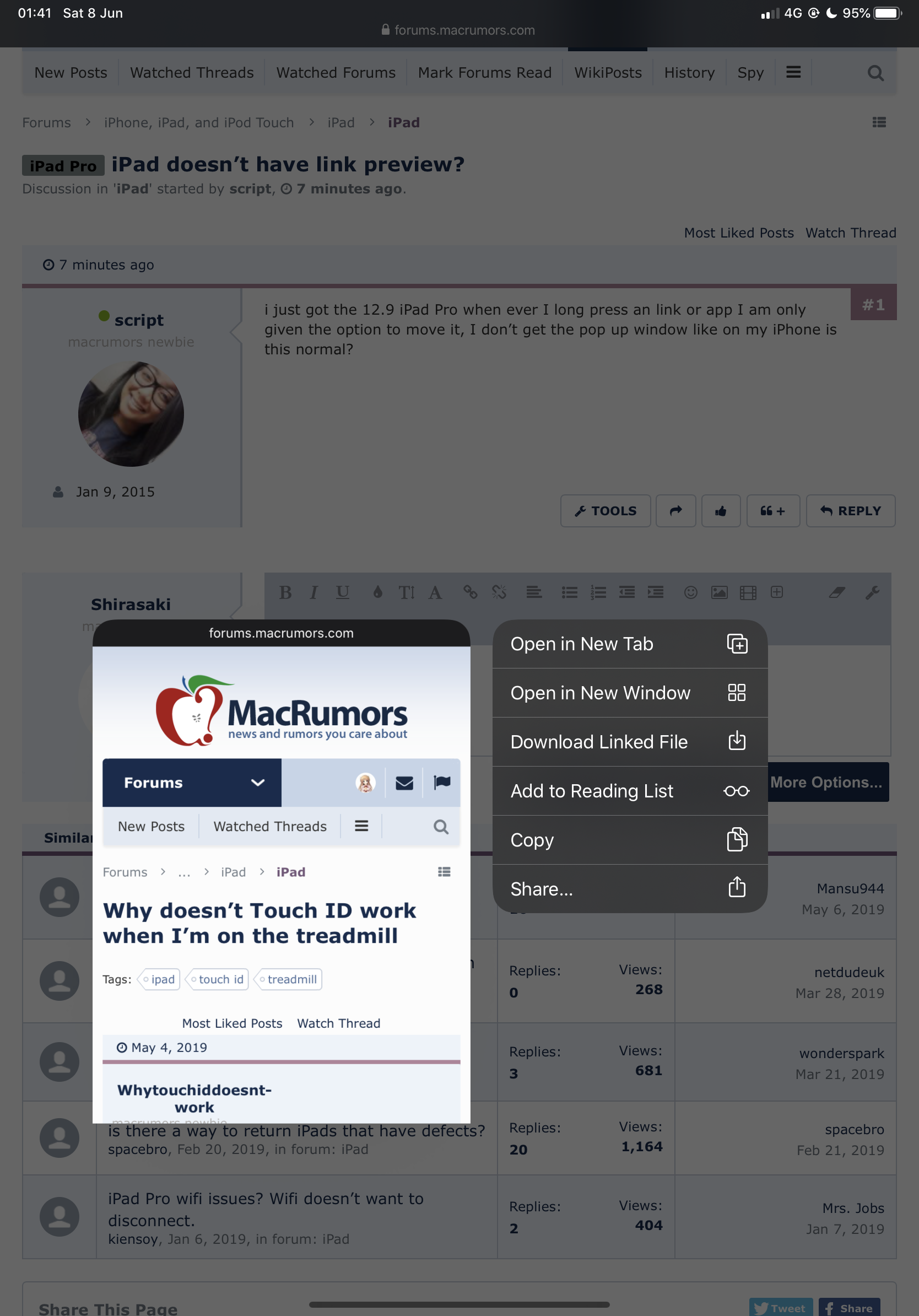 Shirasaki macrumors P6 May 16, 2015 16,887 12,583 Jun 7, 2019 #2 In iOS 13, you can get it. But for iOS 12, it is normal on iPad that you don’t get link preview.