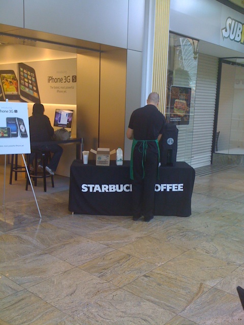 Yes it was free, they must have hired it from Starbucks. In fact if it lets me post heres a picture.