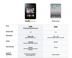 The iPad mini wins on build quality, weight, and to some extent the app store (for most people, even the Amazon app store is not all that limited). The Kindle Fire HD wins on price, sound, resolution, HDMI output, and ease of charging ports (micro USB trumps Lightning).