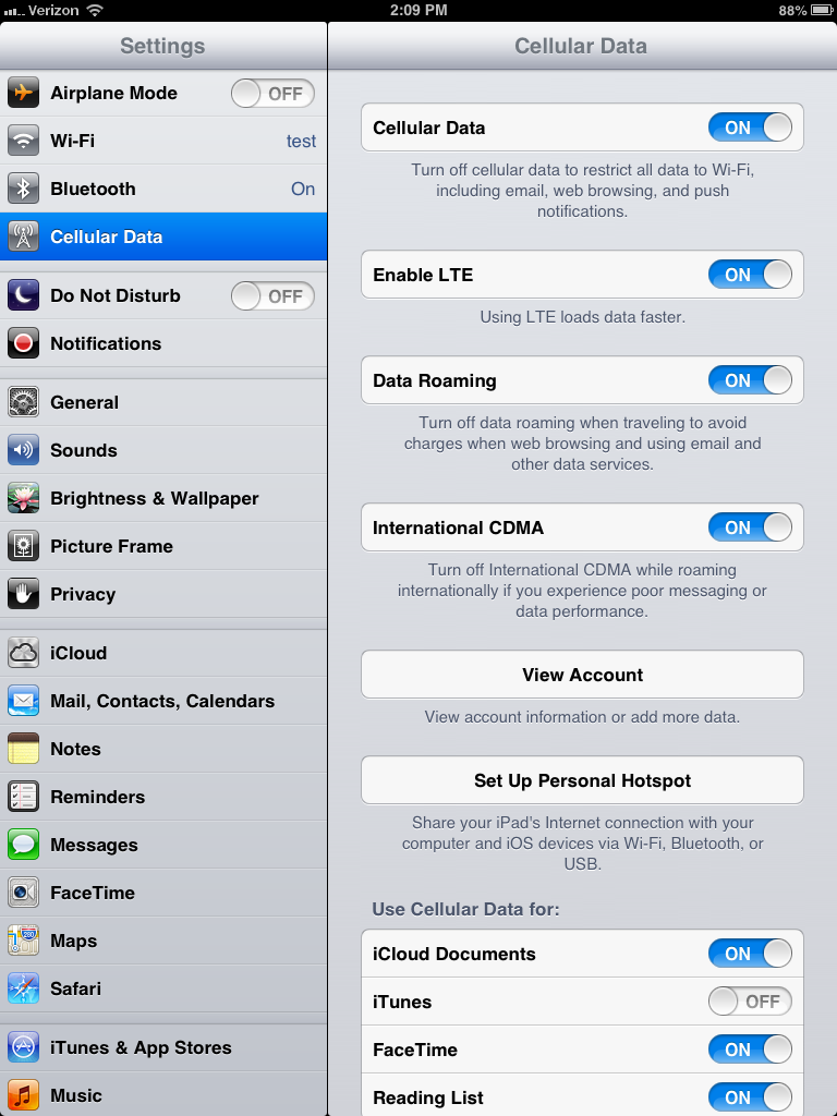 Hotspot and Facetime over Cellular data work from the get-go for Verizon.