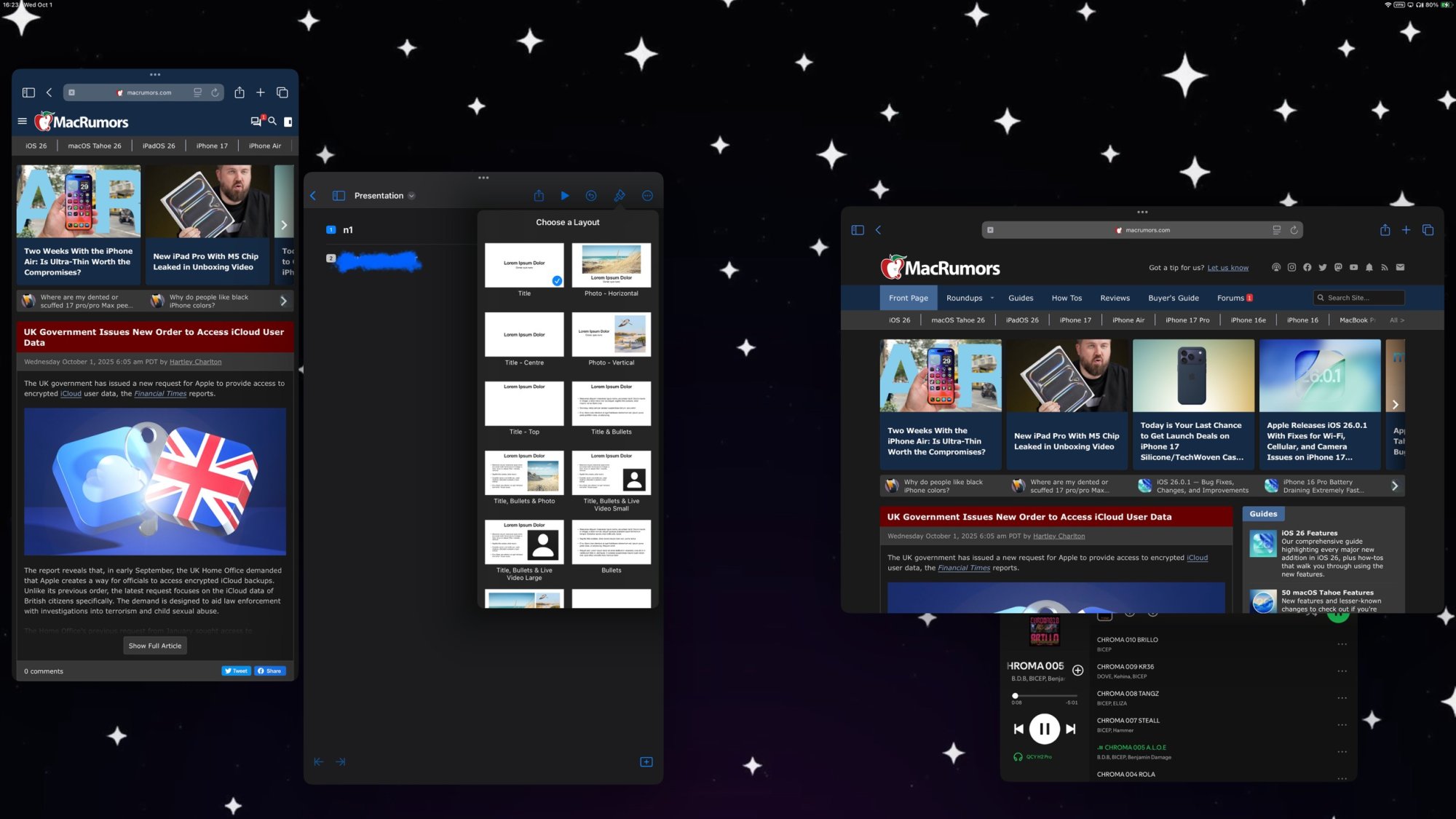 I upgraded to iPad OS 26 and plugged my iPad into my Thunderbolt dock. Holy smokes!!! I can drag windows from the iPad screen to my 4K monitor! I can resize them! I can open multiple Safari windows. I can move windows around with the mouse, like a Mac!