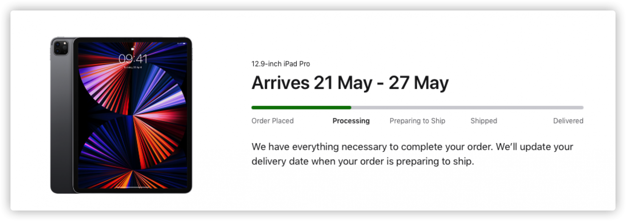 I have exactly the same configuration as you and mine is being processed. Arrival time is also from the 21st to the 27th.But I ordered it from UK.
