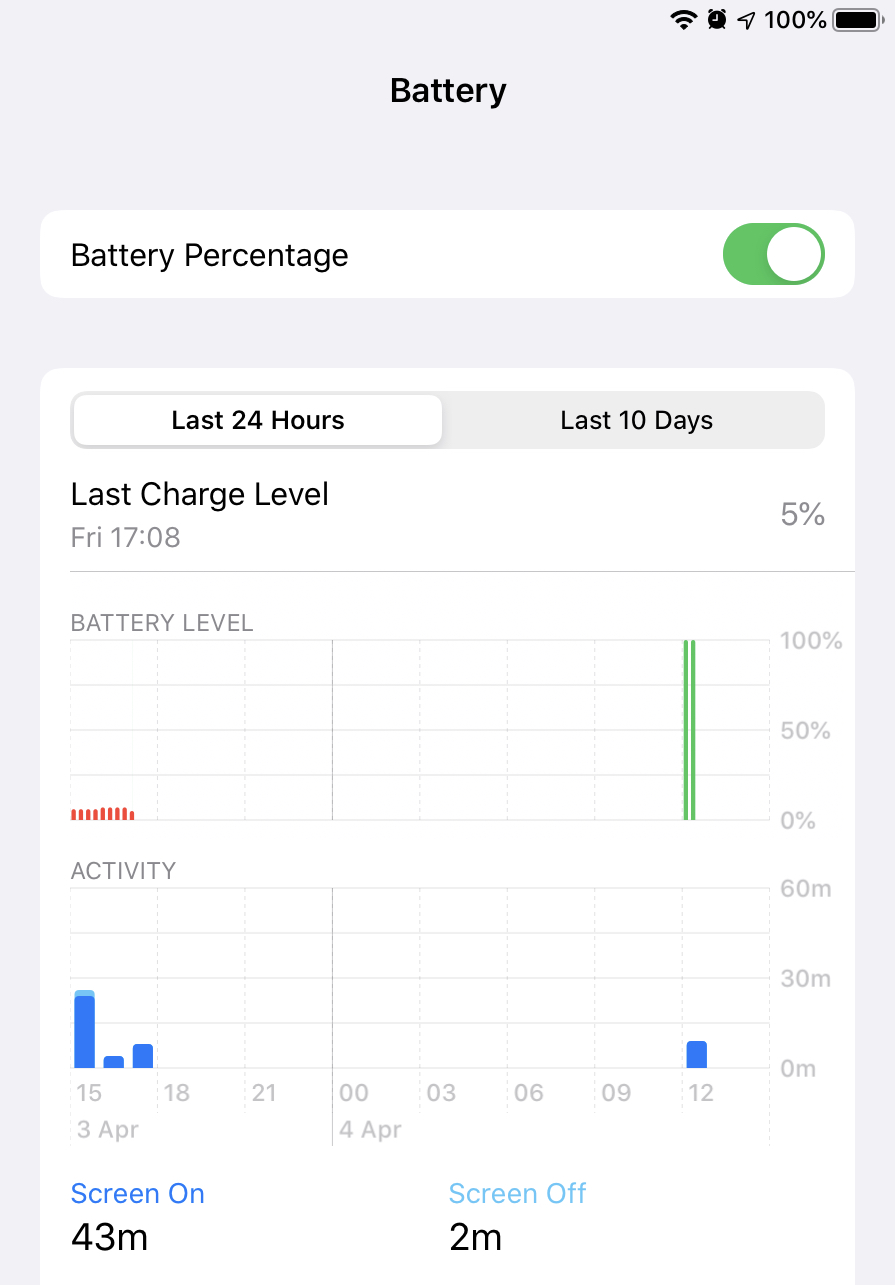 A few days ago my iPad refused to charge. I would plug it in and it wouldn’t even say “not charging“, it was still at 5%. I decided to turn it off for the night and try again tomorrow. The next morning it was charging. After 2 hours it was at 100% (whish is usual charging speed for me). I was using it for 2 days without charging again, but when it was time to charge, same problem. I checked the cable, it was working on all my other devices. No other cables worked on the iPad either. The iPad would recognise some cables by saying “unlock to use accessories”. After cleaning the port and hard resetting (multiple times). It still didn’t work. So i decided to attempt a DFU restore. I plugged it into my PC with the intent to back it up first. My PC recognized the iPad, but iTunes didn’t. Without being able to back it up first, i gave up on the DFU restore. So last night it shut down. I tried to turn it on, but it showed the empty battery icon. I plugged it in and the apple logo appeared. It turned on, as soon as it did, the battery lit up on the screen and said “charged 5%”, but when it disappeared, it wasn’t charging. So with the cable plugged in, I turned it off. This morning I turned it on and it was at 100%. When I went into battery settings it said this: