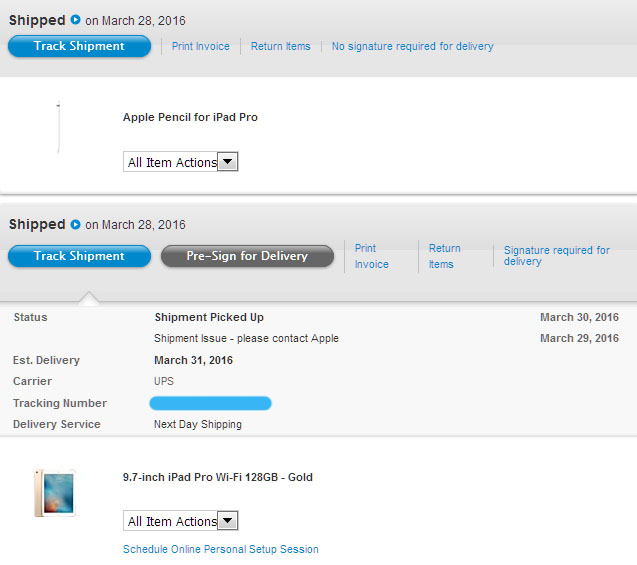 I am just not sure what the it means by 'Shipment issue - please contact Apple' on the Apple status. Hope it's just a glitch.