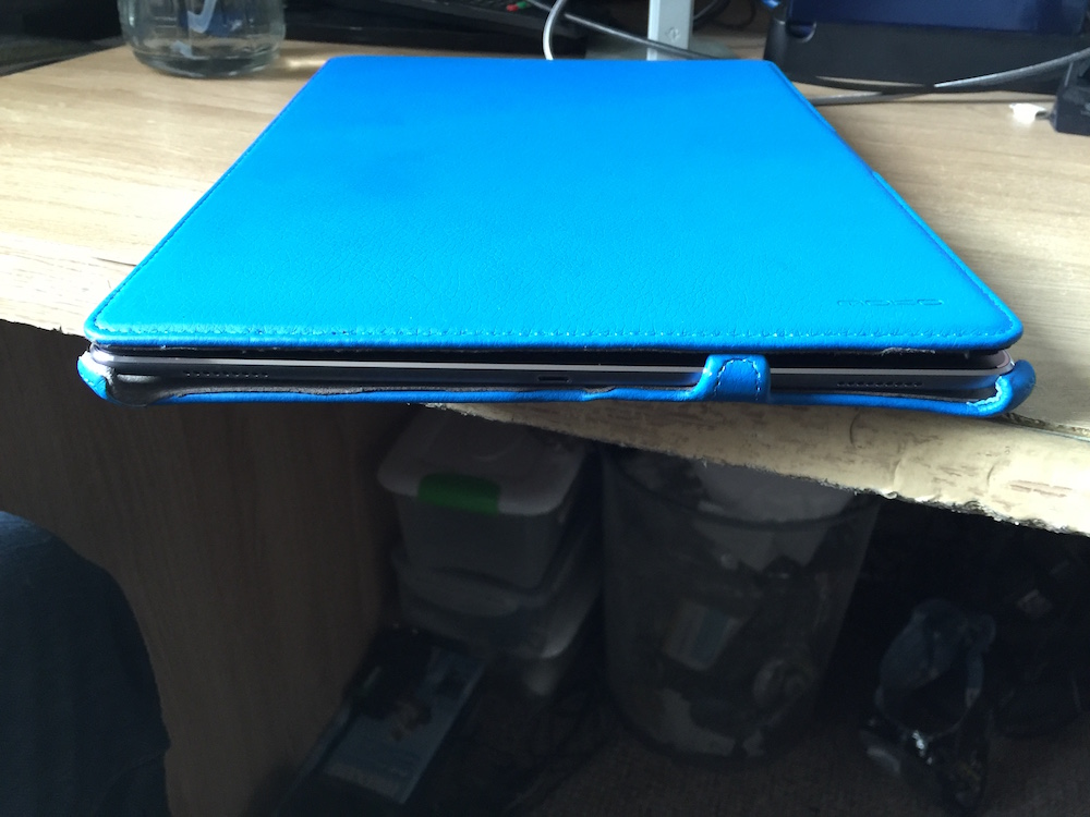 But I do have the Smart Keyboard which doesn't always get used and I have a nice leather case for the very rare occasions when I know I'll be needing a bit of added protection. I've also got a Moko case that I got as a stand-in, but that doesn't get used any more (If anyone wants it, (in the UK) give me a shout and you can have it, gratis of course, I don't need it. It's been used less than two days and hasn't left the house, here's a piccie)