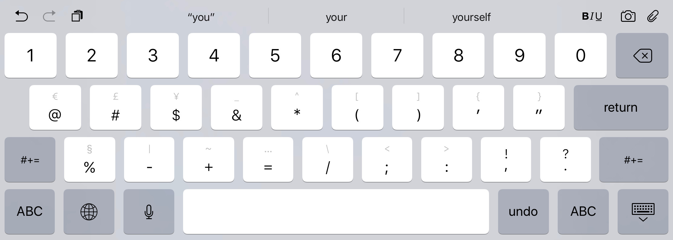 I do not understand why now there are both black and grey letters, signs, numbers on keys. No such thing on iPhone and it was not the case on iPad.