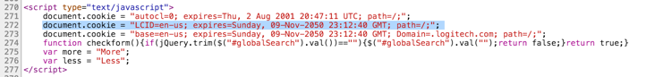 It's embedded in the HTML page directly as the date that the cookies expire on. The code begins on Line 270 of the document, and here's a picture of it: