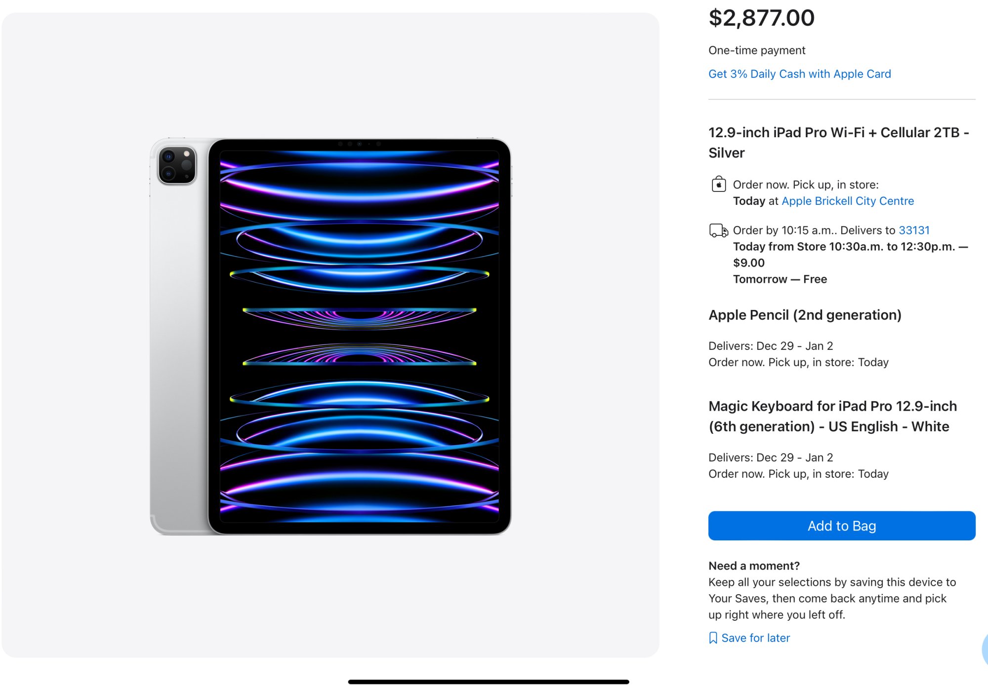 We were talking about the upcoming OLED iPad Pro, whose maxed-out price is yet unknown and the subject of this speculation, along with the rumored sturdier new Magic Keyboard and new Pencil 3. Future disagreements can be avoided by careful reading of this thread. Ciao!Actually that’s wholly inaccurate. Apple.com is a click away. But since you’re averse to do elementary research prior to stating something that is easily disproven I will do the light work for you.