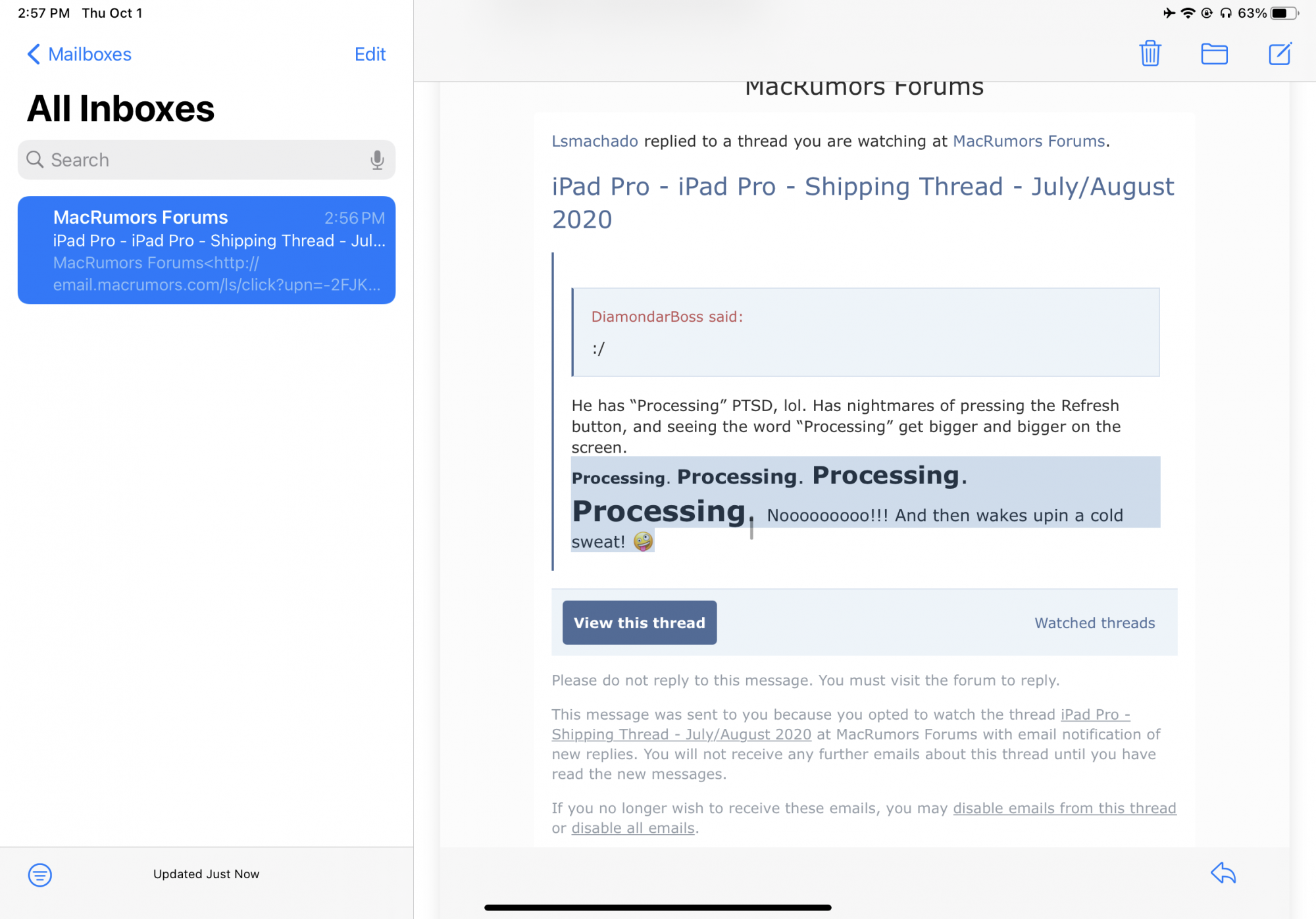 This is the Scariest Thing I’ve Ever Seen in my Inbox.He has “Processing” PTSD, lol. Has nightmares of pressing the Refresh button, and seeing the word “Processing” get bigger and bigger on the screen.