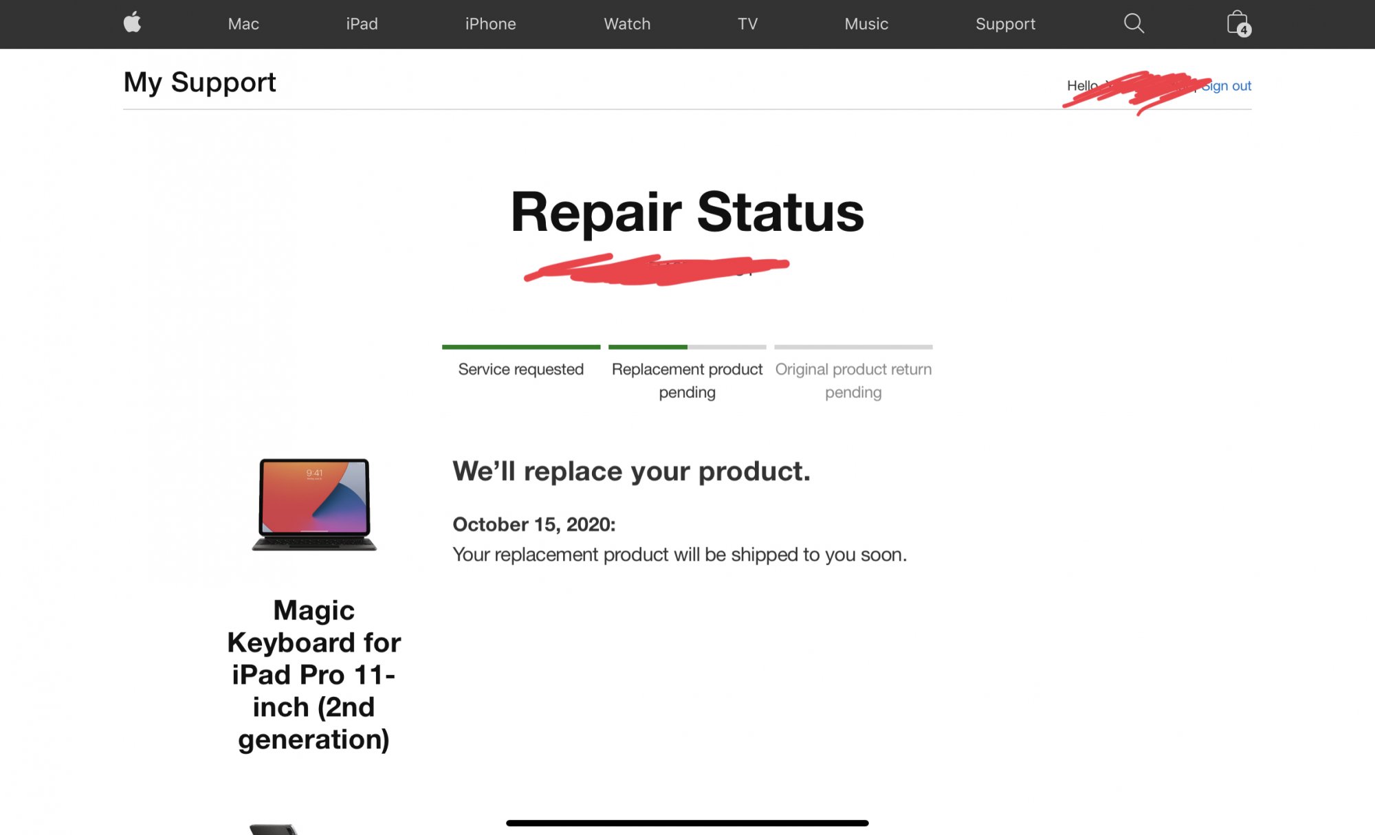 So you know how I had a slightly damaged magic keyboard? Well, after a long wait on the phone...