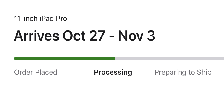 My iPad Pro 11 order is still processing.